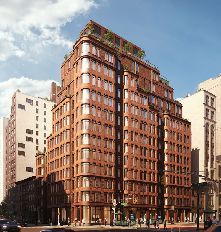 The Village West is a new 13-story luxury condominium building located at 525 Sixth Avenue, at the intersection of Greenwich Village and Chelsea. Developed by Izaki Group and designed by BKSK Architects, it features 68 residential units, a distinctive curved red-brick façade, and amenities including a fitness center, resident lounge, and landscaped terraces.