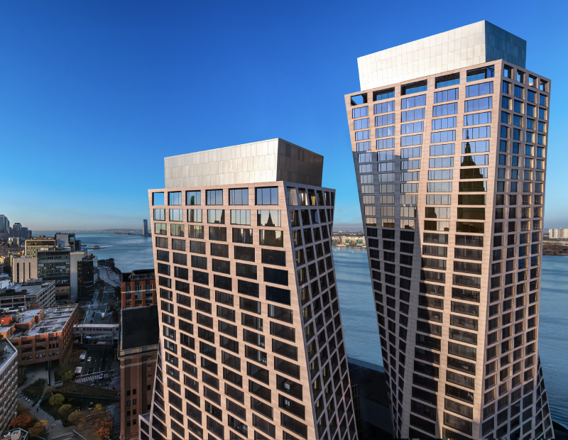 Construction is rising on 80 Clarkson Street, a two-tower residential complex along the Hudson River waterfront in Manhattan’s West Village. Designed by COOKFOX Architects and SLCE Architects and developed by Zeckendorf Development, Atlas Capital Group, and the Baupost Group, the project consists of 37- and 45-story structures standing 400 and 450 feet tall, respectively. The $1.25 billion development will span approximately 650,000 square feet and yield 100 condominium units, nearly 37,000 square feet of ground-floor retail space, and enclosed parking for 69 vehicles. Suffolk Construction is the general contractor for the property, which is bound by Clarkson Street to the north, West Houston Street to the south, the 17-story 570 Washington Street to the east, and West Street to the west.